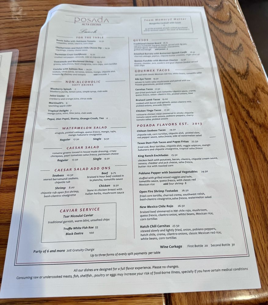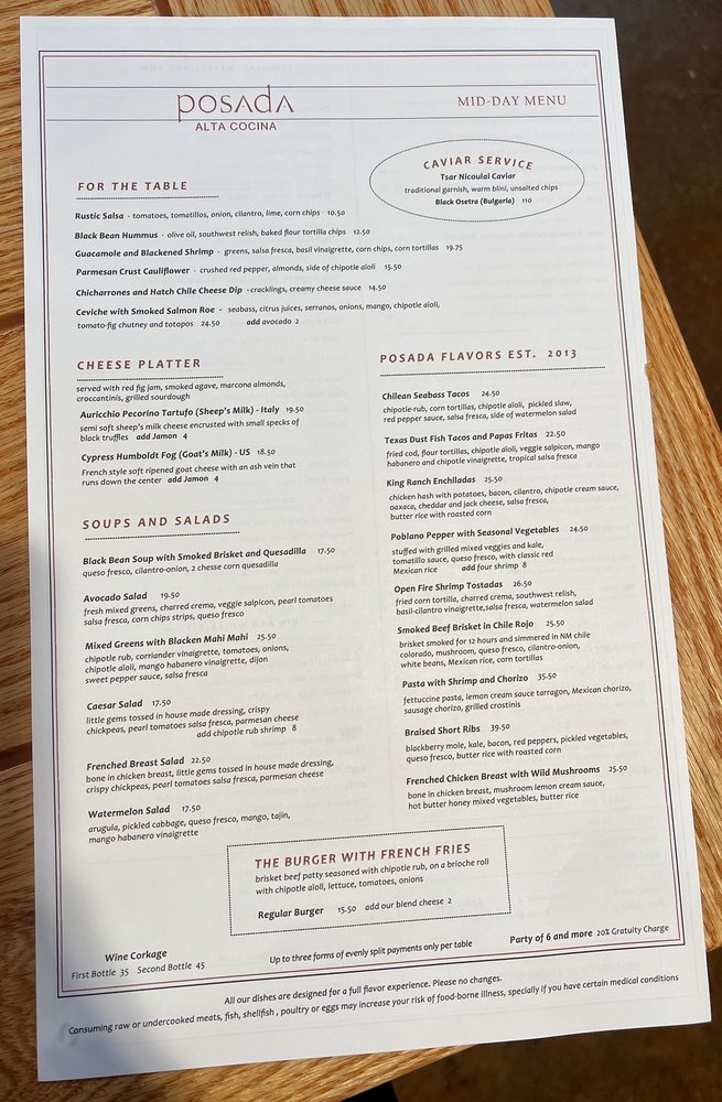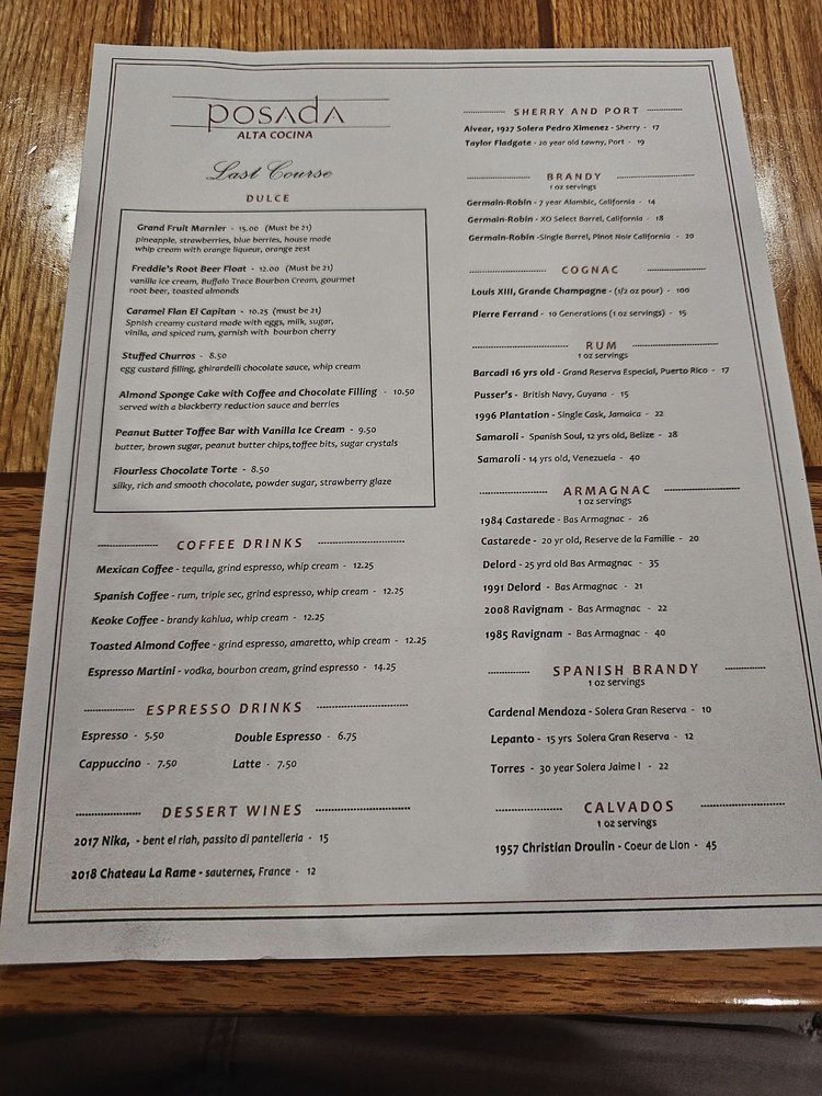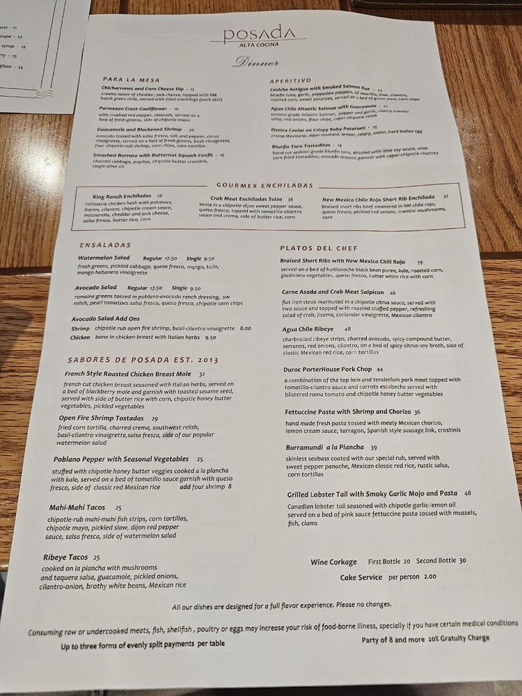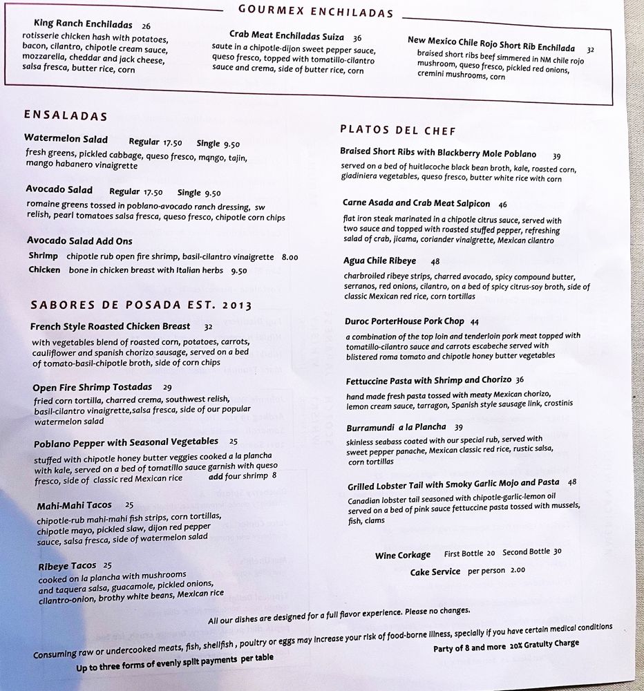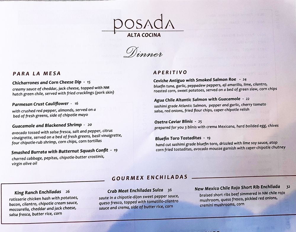 Posada Alta Cocina Menu